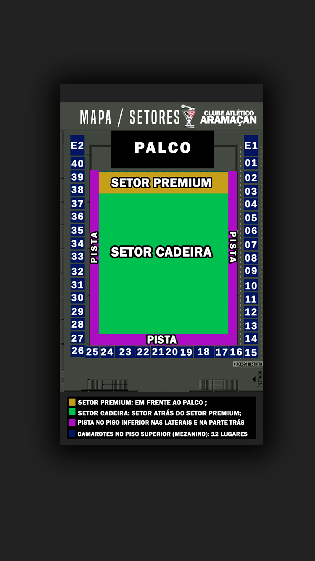 - Camarotes: Podem ser comprados por qualquer pessoa. O camarote fechado é preço único. Temos também o camarote compartilhado que pode ser comprado por qualquer pessoa com valores individuais.